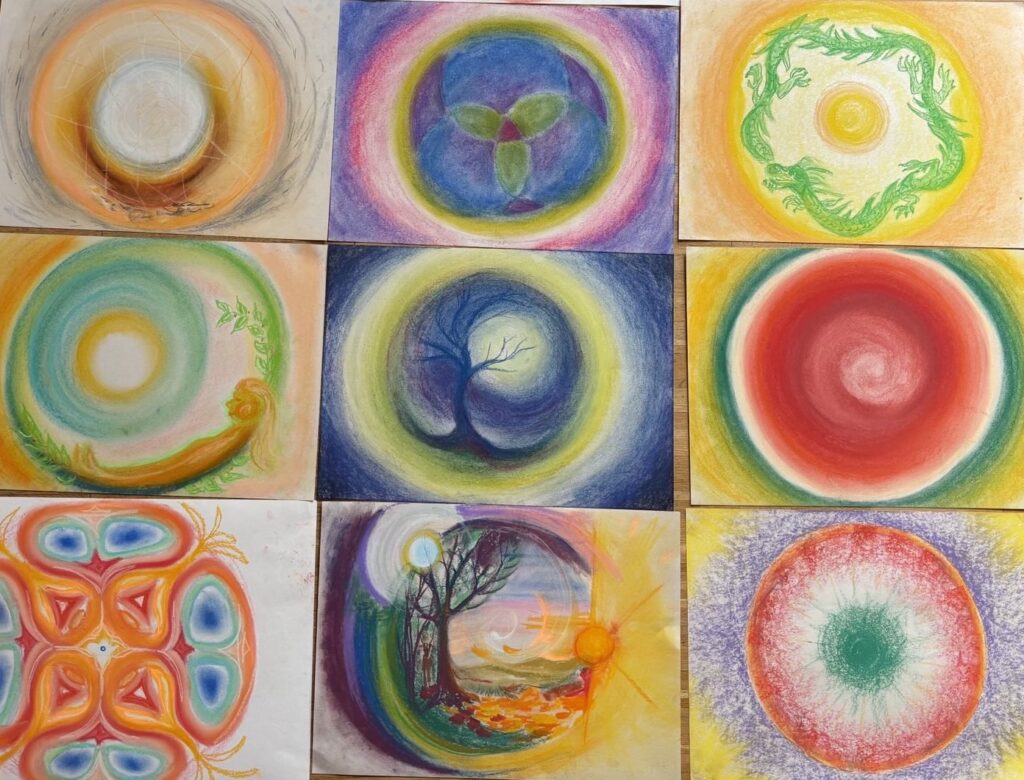 Zuerst bei einer Yogaeinheit mit Dieter zur Ruhe kommen und anschließend unter Anleitung von Elisabeth das eigene Mandala finden und mit Pastellkreide gestalten. Wir wollen in diesem Workshop unser eigenes individuelles Mandala intuitiv aus uns schöpfen und die Bedeutung für uns selbst als Spiegel unserer Persönlichkeit herausfinden. Die Methode geht auf den Arzt und Psychoanalytiker C.G. Jung zurück und wurde von der amerikanischen Kunsttherapeutin Susanne Fincher weiterentwickelt.